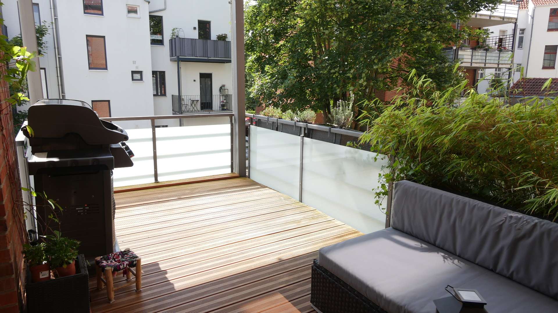 weiße Wände, hellbrauner Laminatboden und ein großzügiger Schnitt sorgen für eine angenehme Wohnatmosphäre. Der große Balkon lädt an sonnigen Tagen zum Entspannen im Freien ein.
