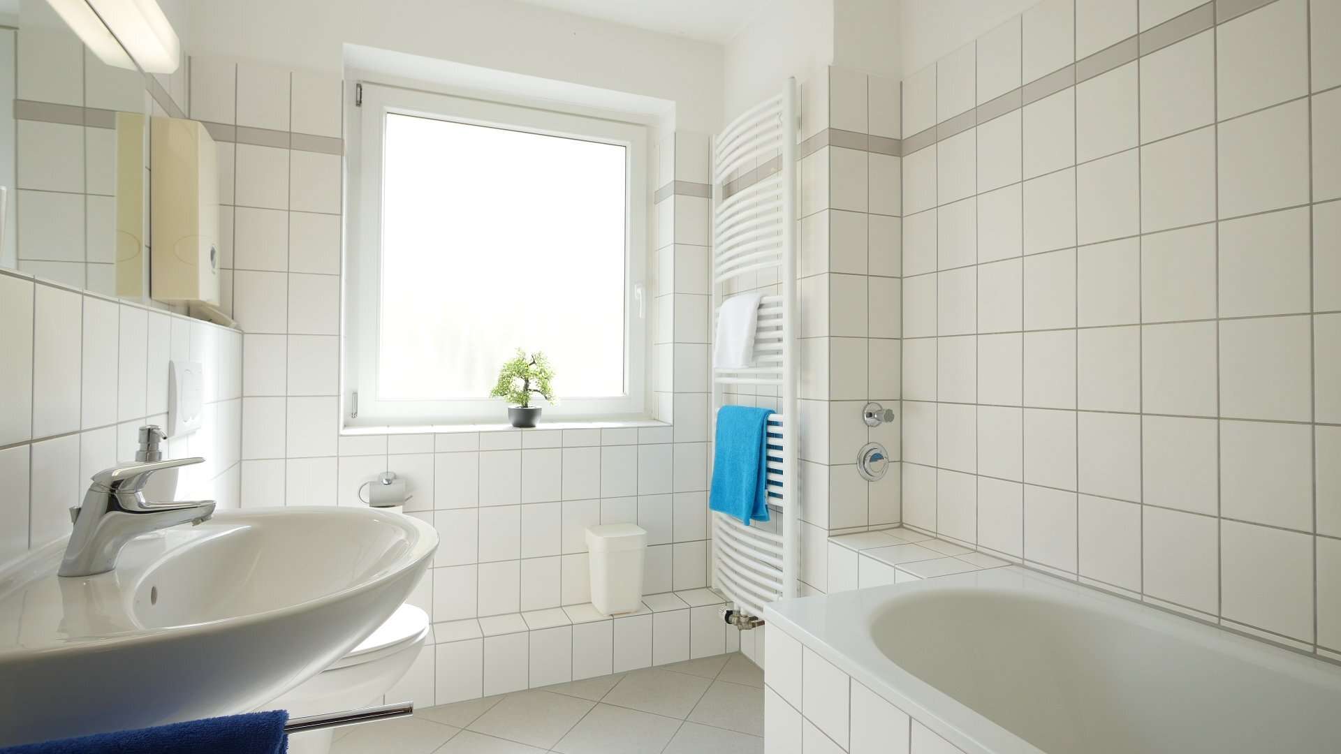 Im Keller steht eine Waschmaschine zur allgemeinen Nutzung bereit.