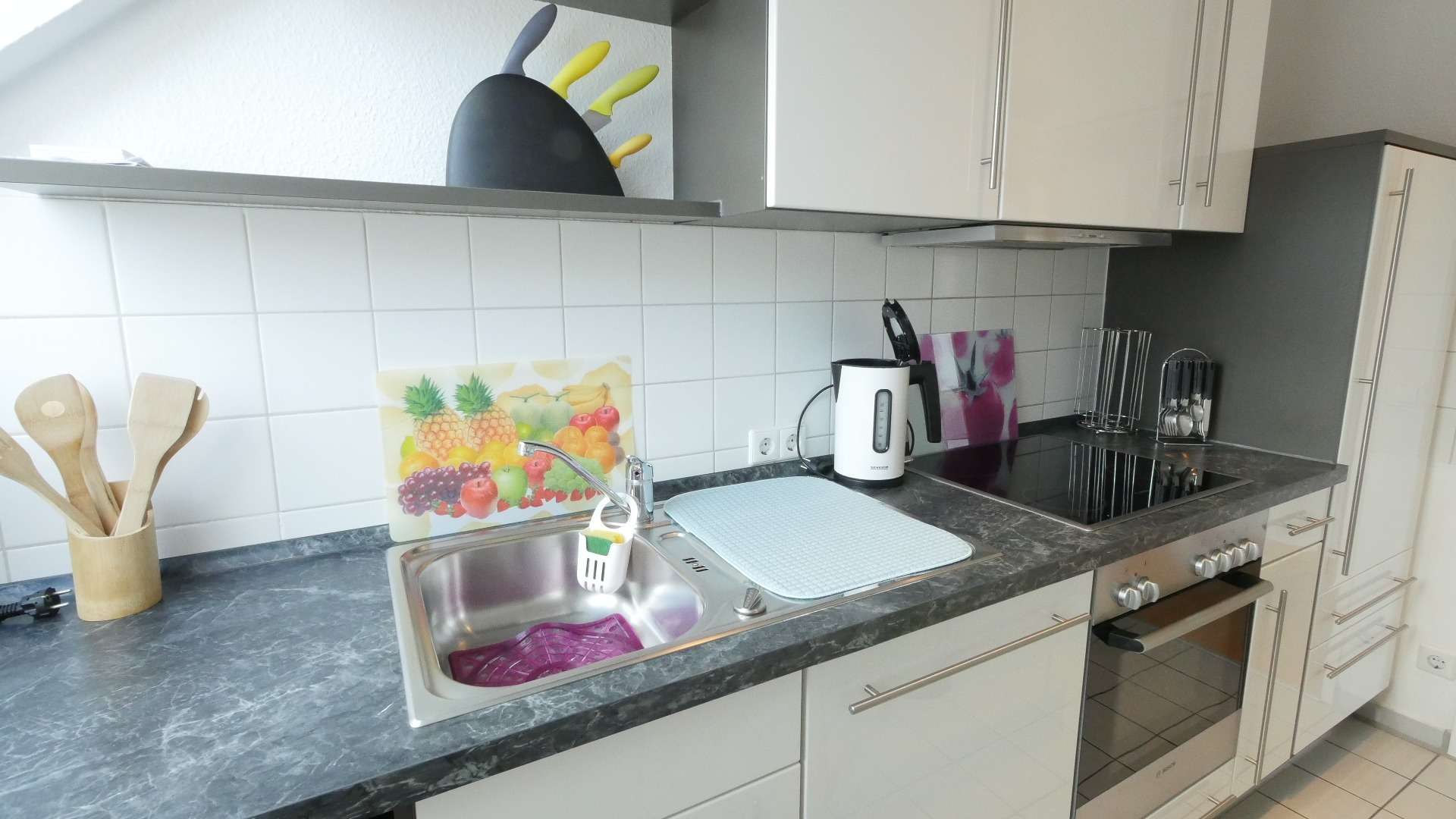 – Sämtliche Küchenutensilien, Wasserkocher, Kaffeemaschine