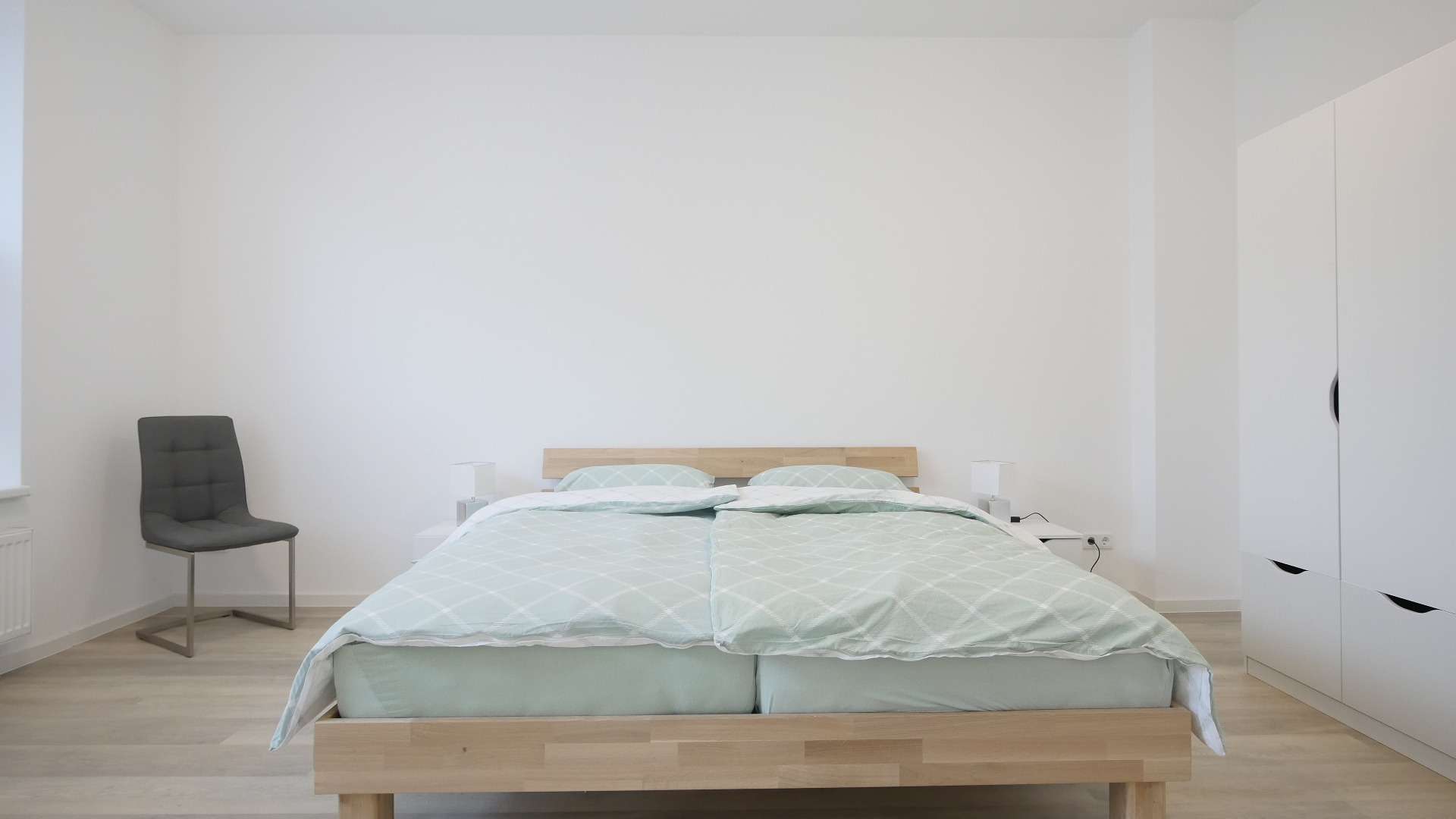 In der Wohnung ist Parkettboden verlegt.