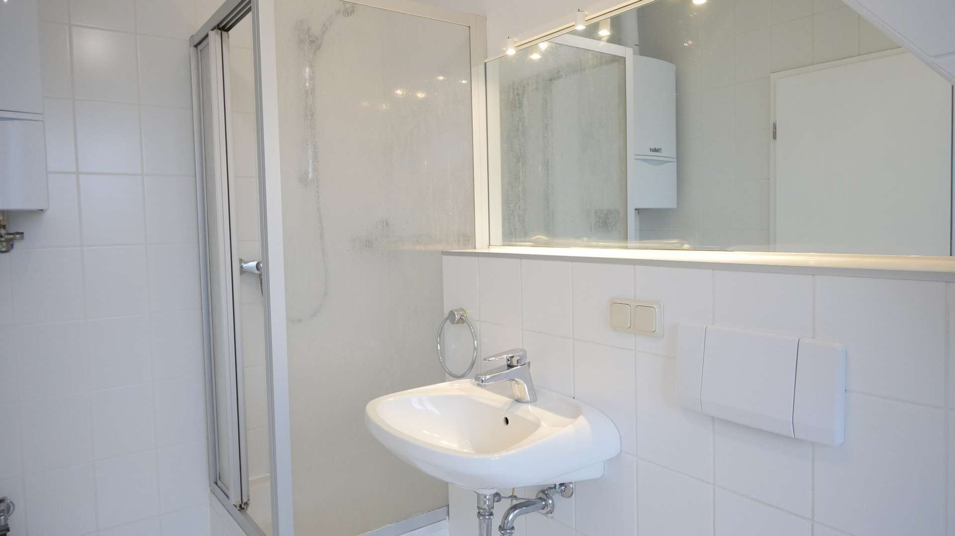 Das helle Tageslichtbad ist ausgestattet mit Dusche, Waschbecken und WC. Internet vorhanden.