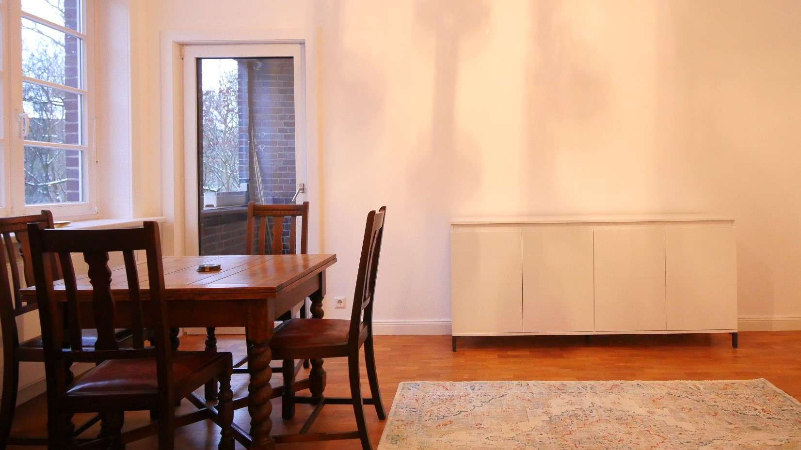 Der antike Sekretär im Esszimmer wird aus der Wohnung entfernt (falls gewünscht kann dieser auch in der Wohnung verbleiben).