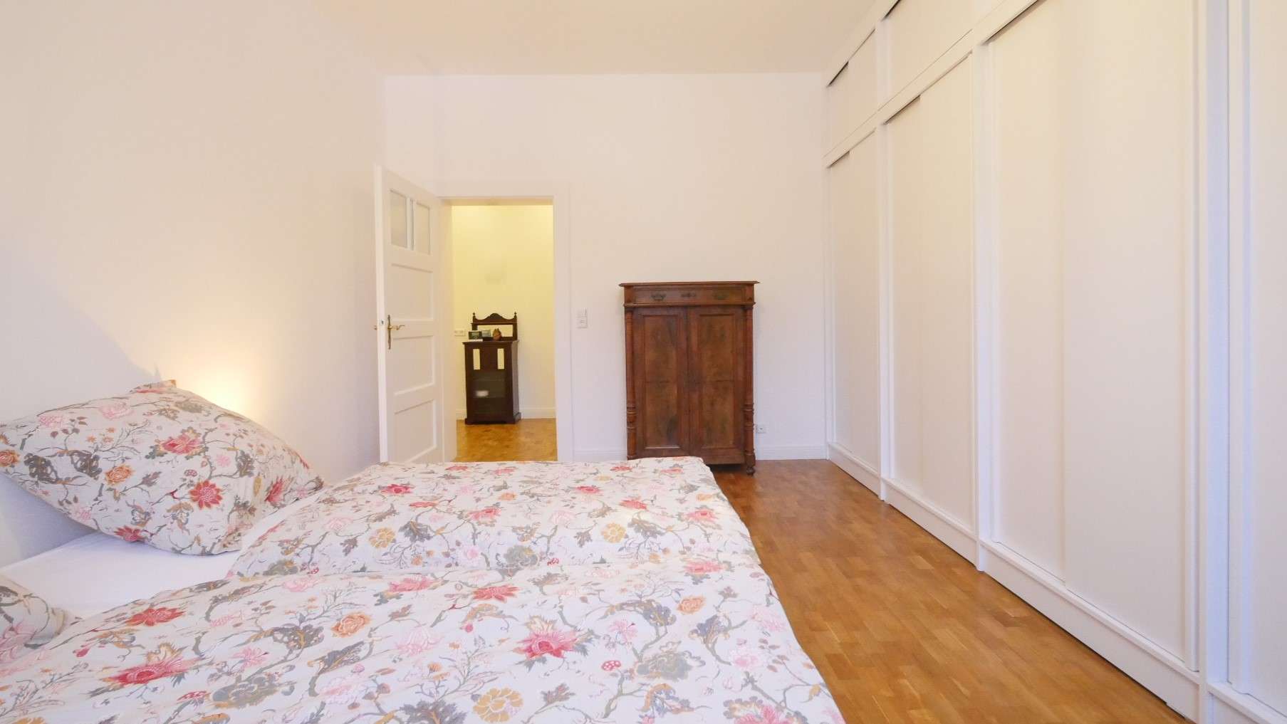 Das Schlafzimmer ist ruhig gelegen und mit einem komfortablen Doppelbett (2,00 m x 2,00 m) sowie einem großen Einbaukleiderschrank ausgestattet.