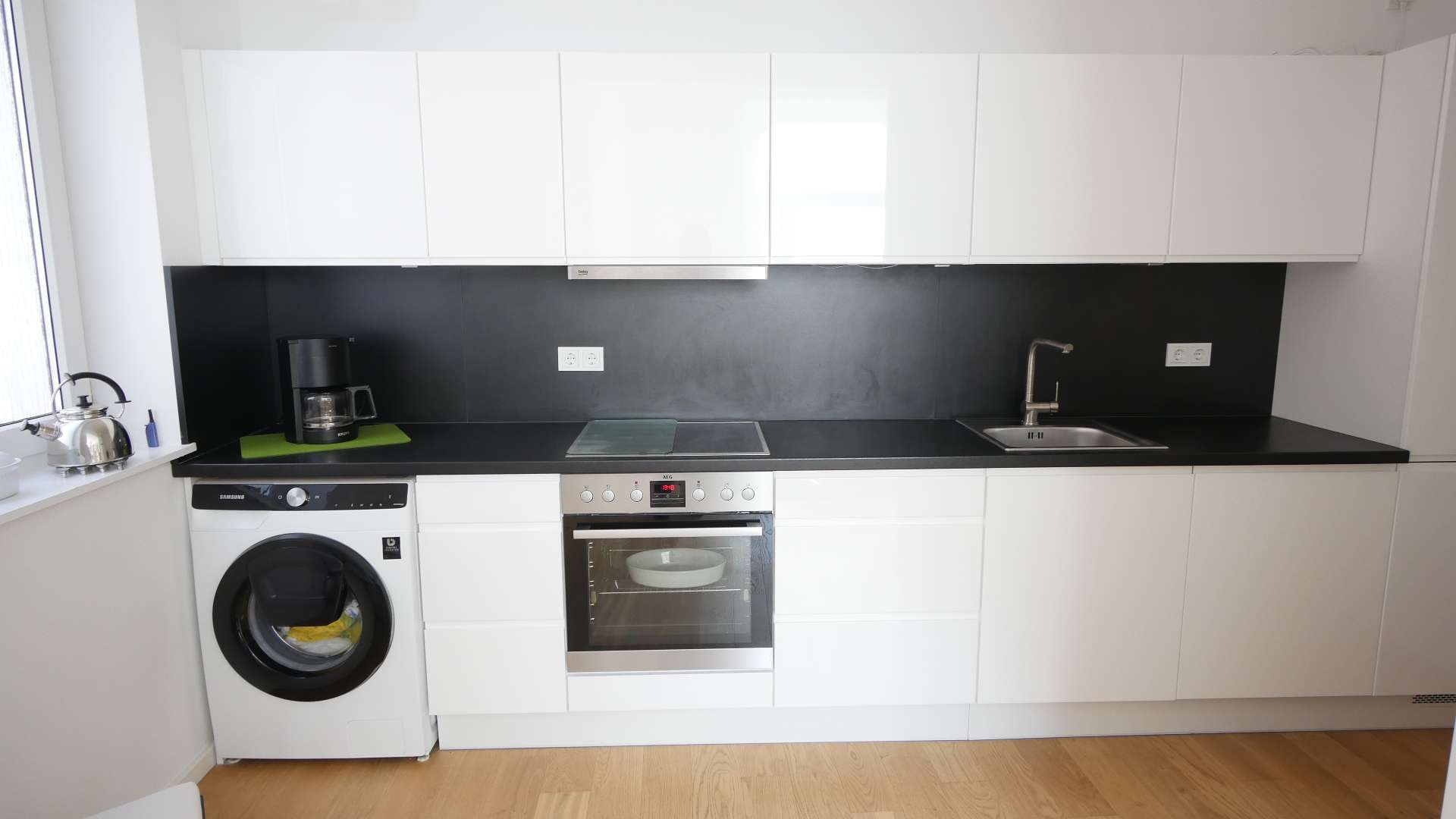 – Sämtliche Küchenutensilien, Wasserkocher, Kaffeemaschine