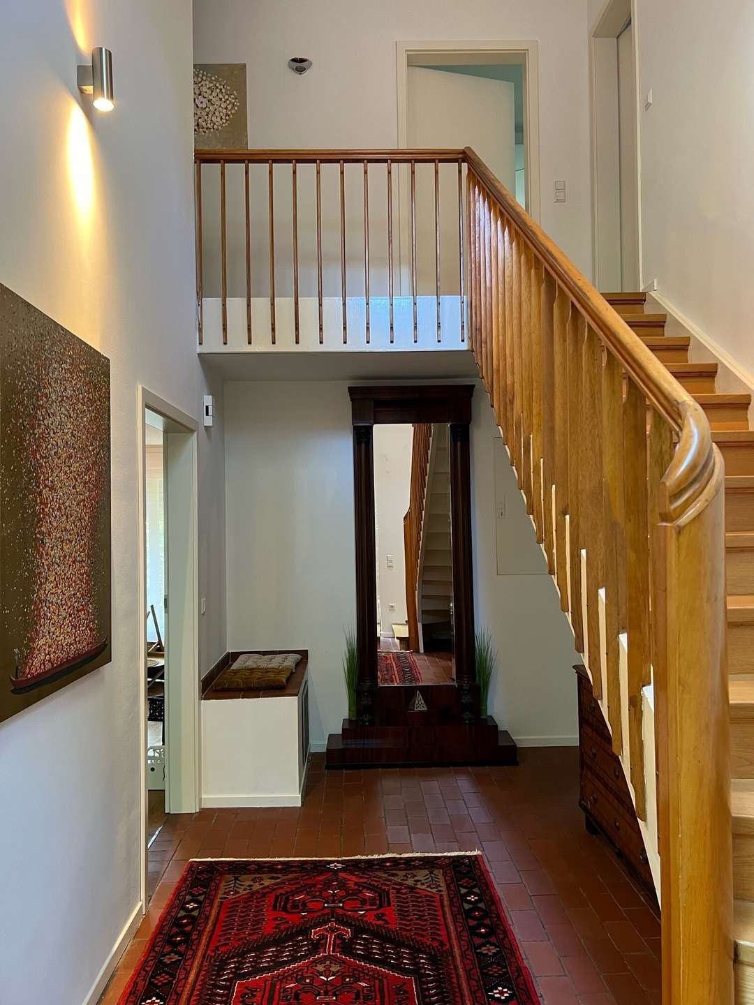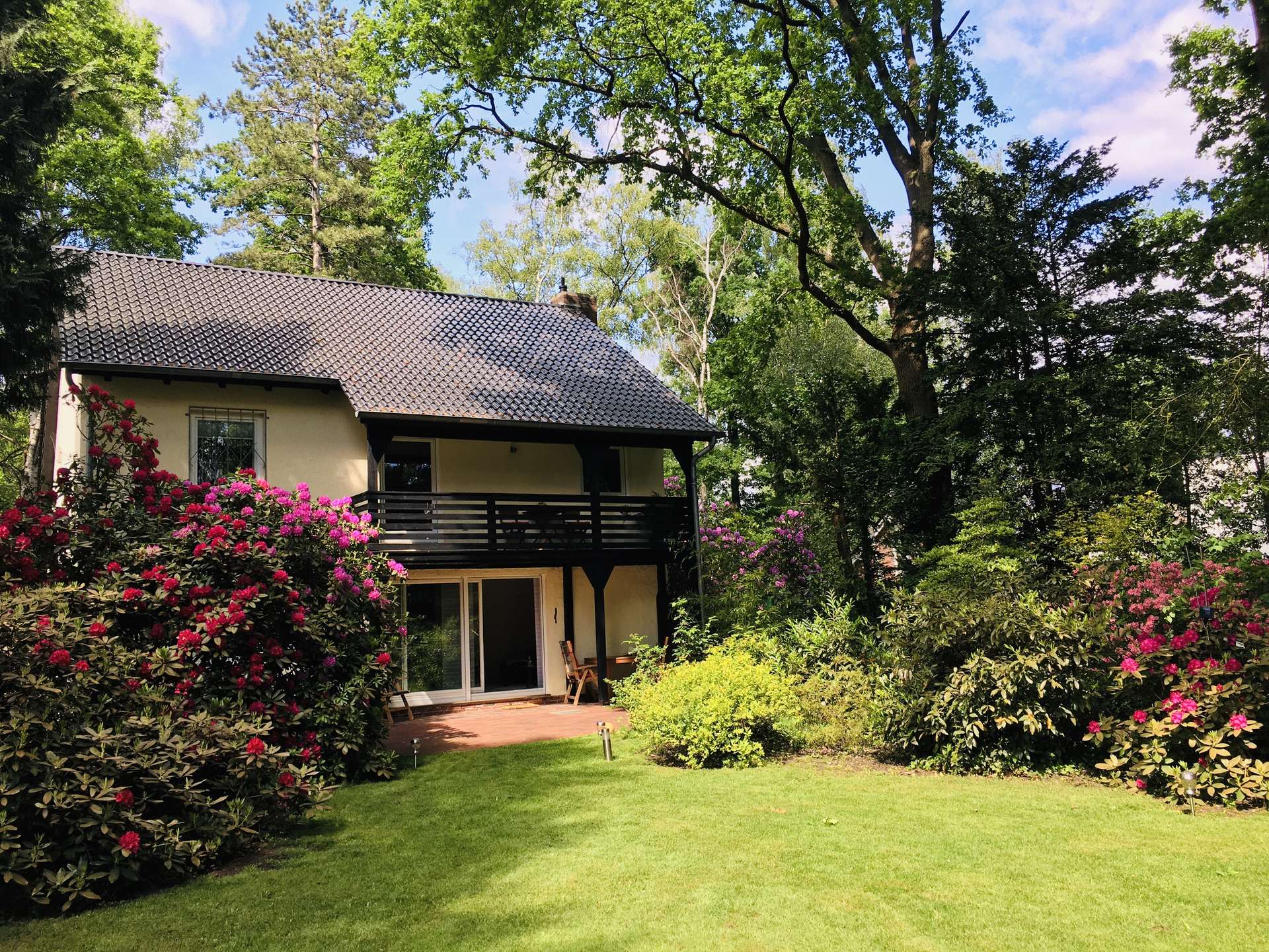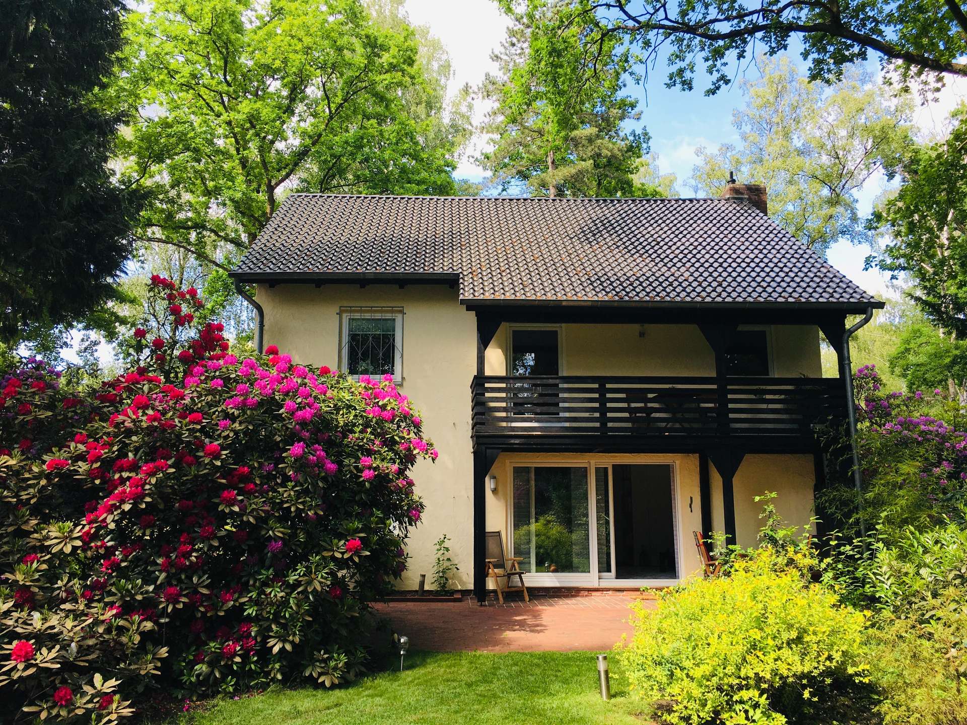 Im Erdgeschoss befinden sich der Wohnbereich mit offener Küche, das Esszimmer, der Flur mit Treppe in das erste OG, der Hauswirtschaftsraum mit Trockner und Waschmaschine und das Gäste-WC. Vom Wohnbereich haben Sie Zugang zur schönen Terrasse und dem sichtgeschützten Garten, welcher mit seinen wunderschönen Rhododendren zum entspannten Verweilen einlädt.