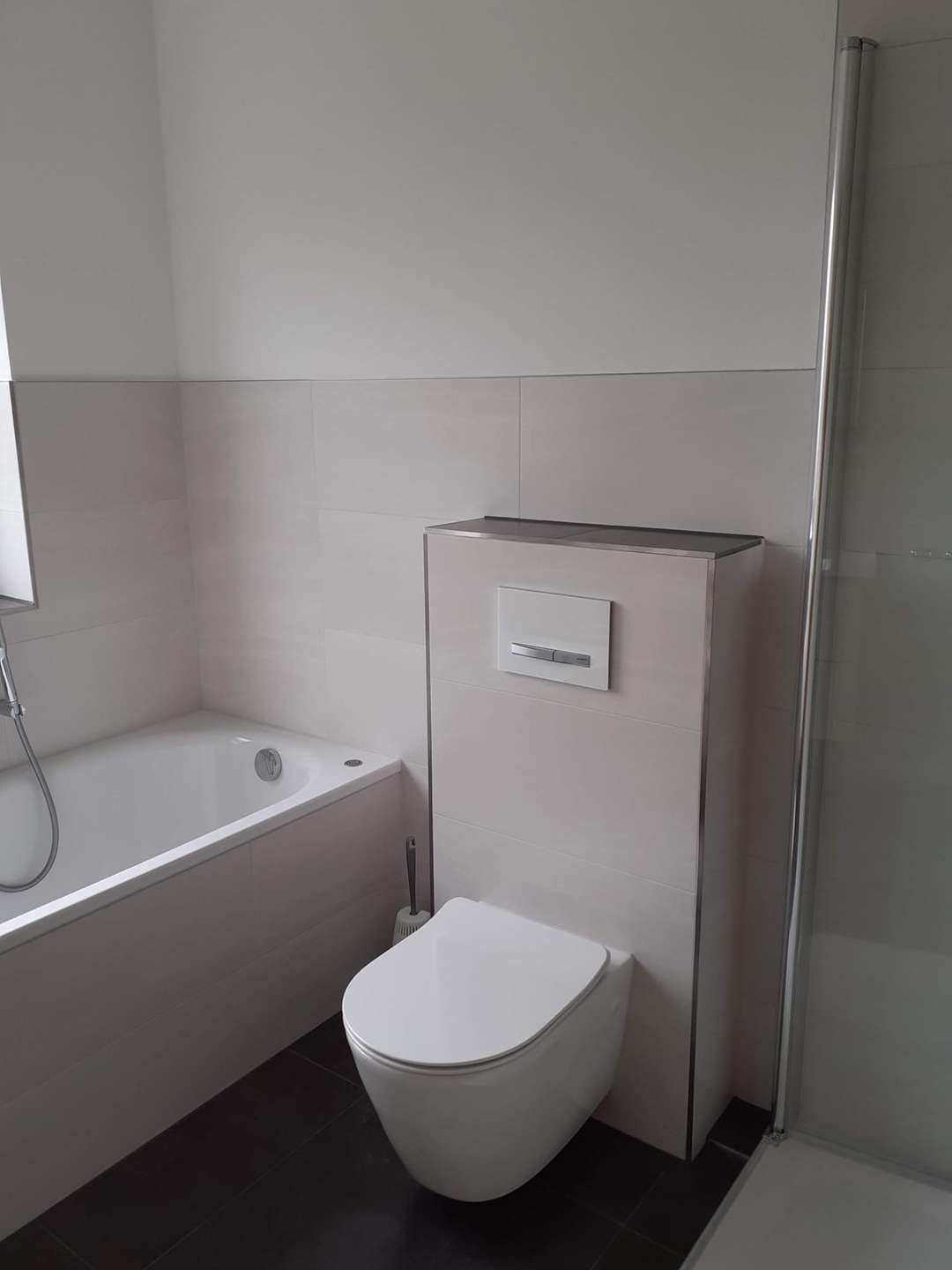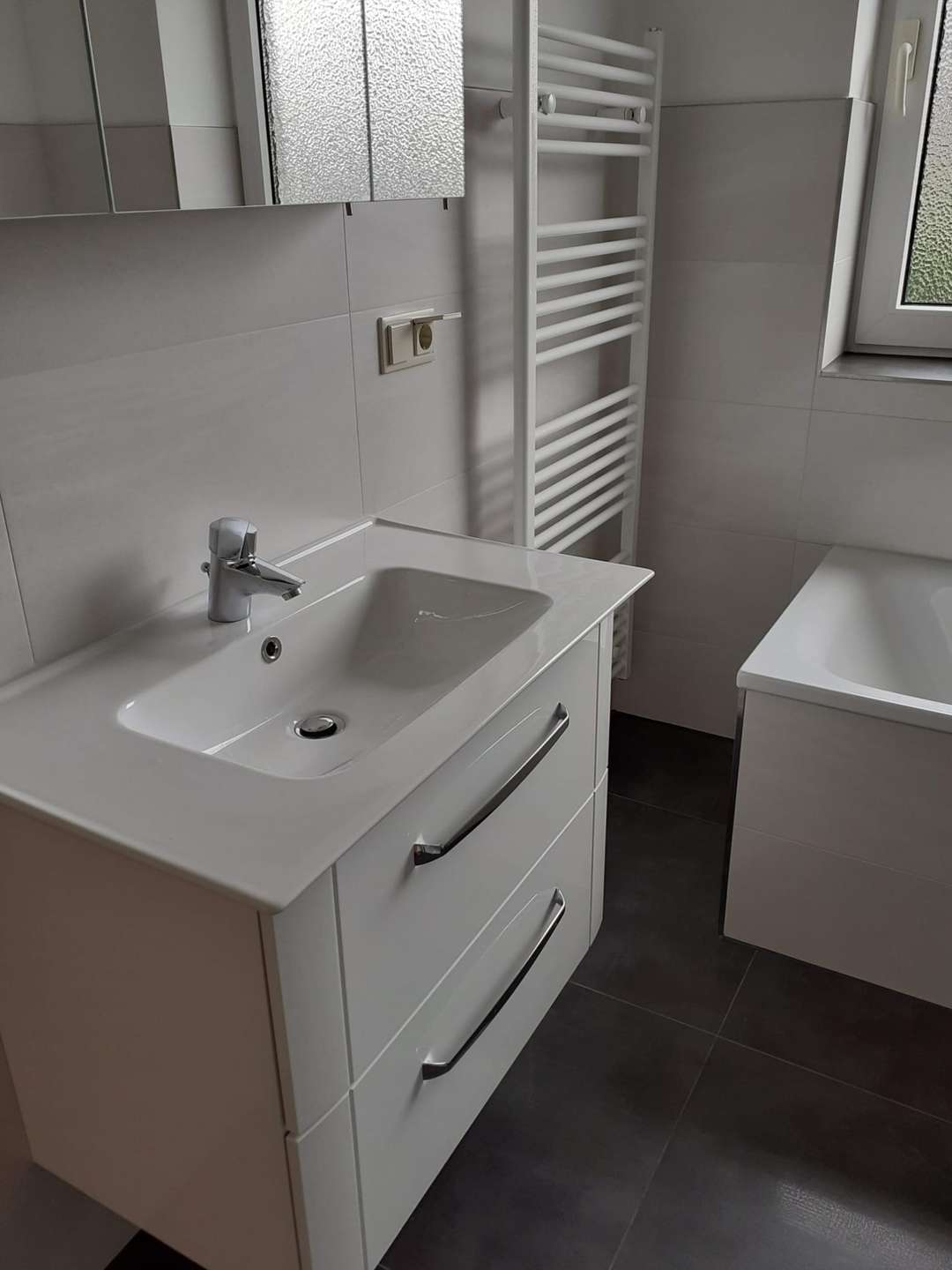 Das Badezimmer ist modern eingerichtet und verfügt über eine Duschwanne, Toilette, Waschbecken, Handtuchhalter, Spiegel sowie ein Fenster das für eine ausreichende Belüftung sorgt. Das Gäste WC mit Toilette, Spiegel, Waschbecken und Fenster steht im Erdgeschoss zur Verfügung bereit.